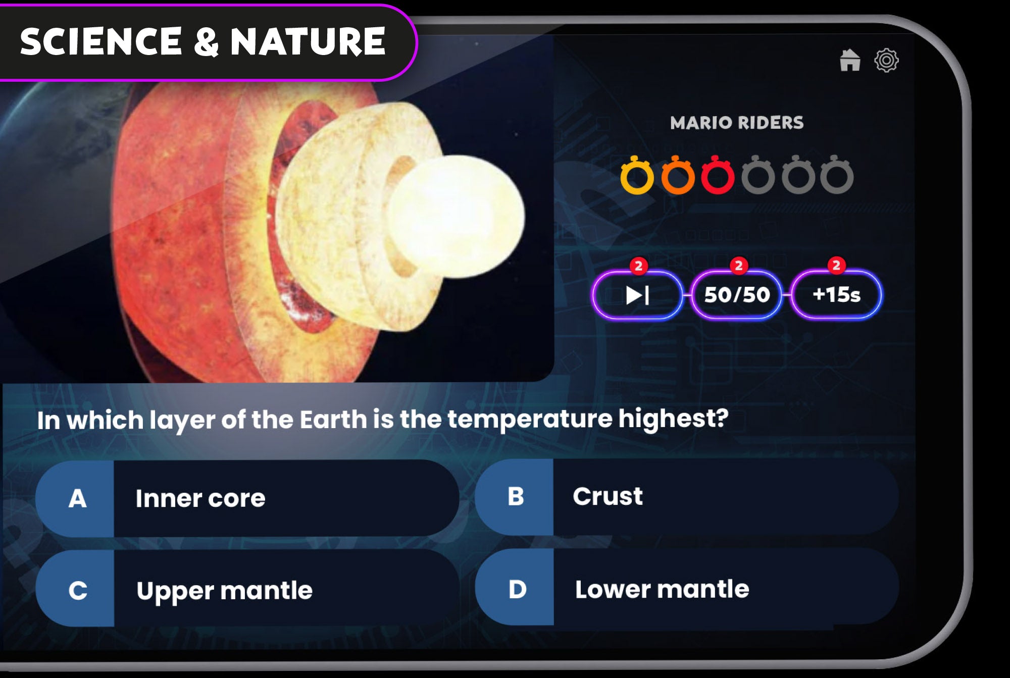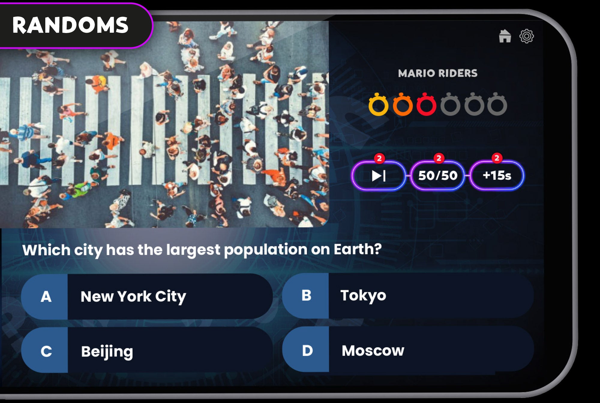 Outsmarted's game AI adjusts question difficulty automatically to a player's age. Now ANYONE in the family can win!